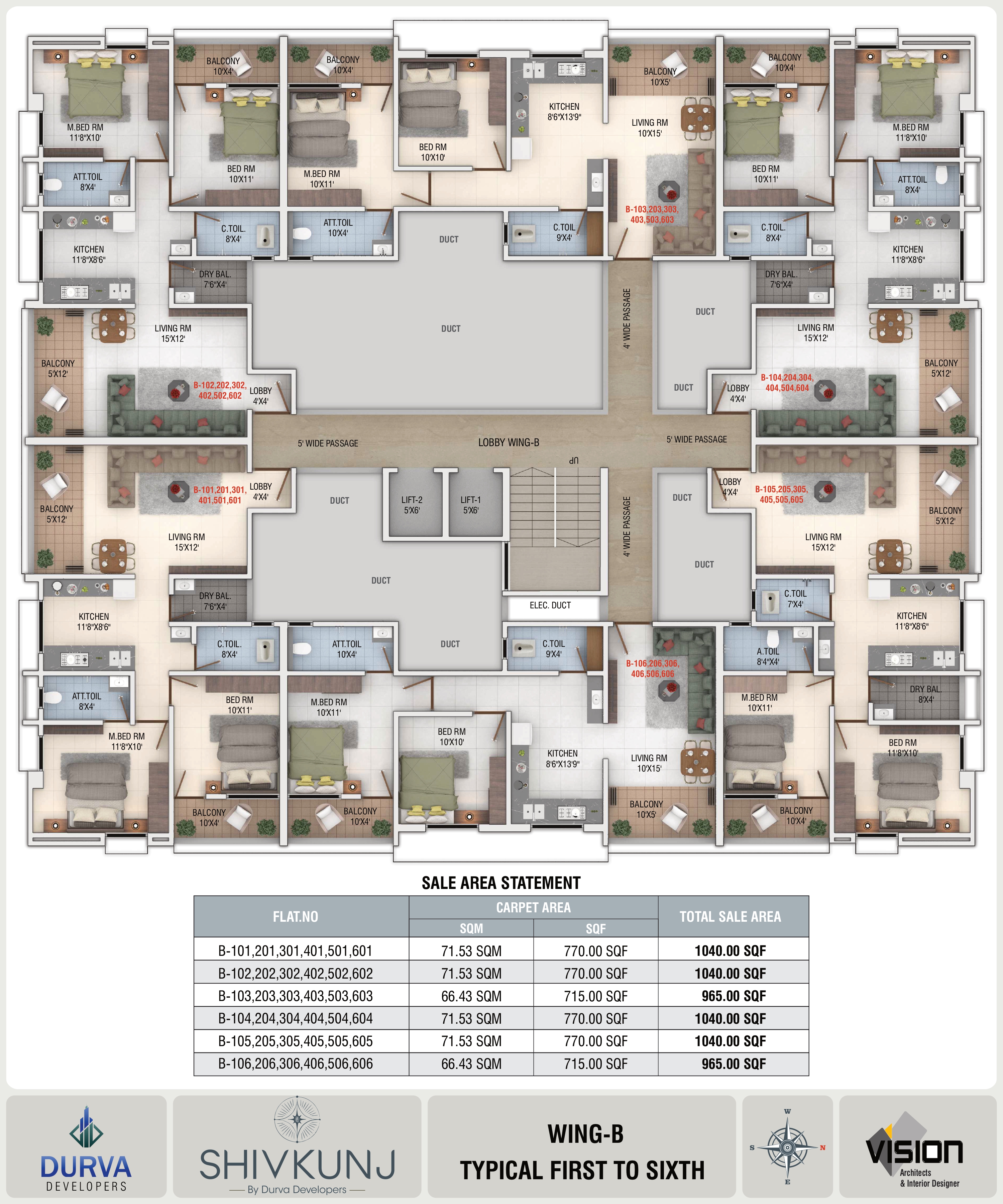 Sale Area Range: 965 – 1040 sq.ft.