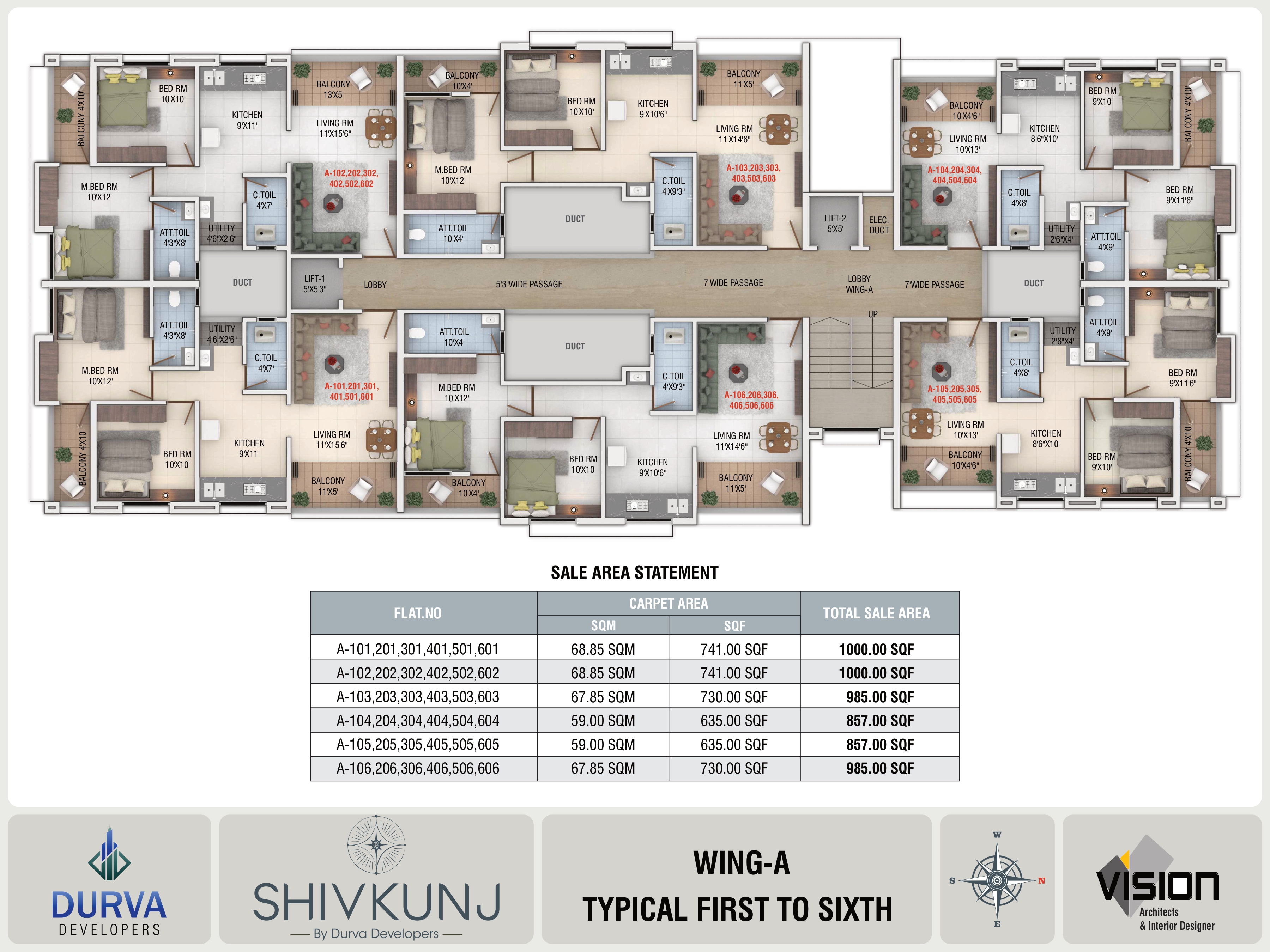 Sale Area Range: 857 – 1000 sq.ft.